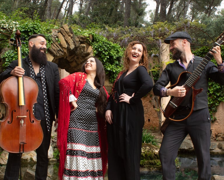 Un viaje profundo a la tradición flamenca, donde añadimos la voz rasgada y expresiva de la cantaora y la elegancia de nuestra bailaora, para construir un cuarteto que despierta el duende y el arte de nuestra tierra.