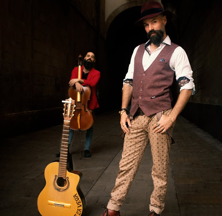 En el dúo Hispano, unimos la elegancia de la música clásica española con la intensidad y los ritmos del flamenco. Nuestra propuesta artística se nutre de clásicos como el místico concierto de Aranjuez llevado por tangos, pasando por Asturias de Albéniz con zapateo flamenco, hasta la alegría que aporta la música Hispanoamericana. Todo ello acompañado con sutiles texturas de música electrónica.